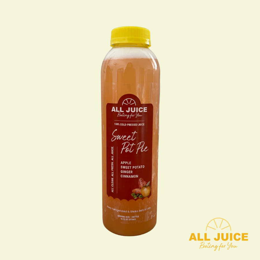 Indulge in the comforting flavors of fall with our Sweet Pot Pie Juice! This delightful blend combines crisp apples and creamy sweet potatoes, perfectly balanced with a hint of zesty ginger and warm cinnamon. Each sip offers a cozy, seasonal taste reminiscent of homemade pie, while delivering a nourishing boost of vitamins and antioxidants. Enjoy this deliciously unique juice as a refreshing treat that warms the soul!